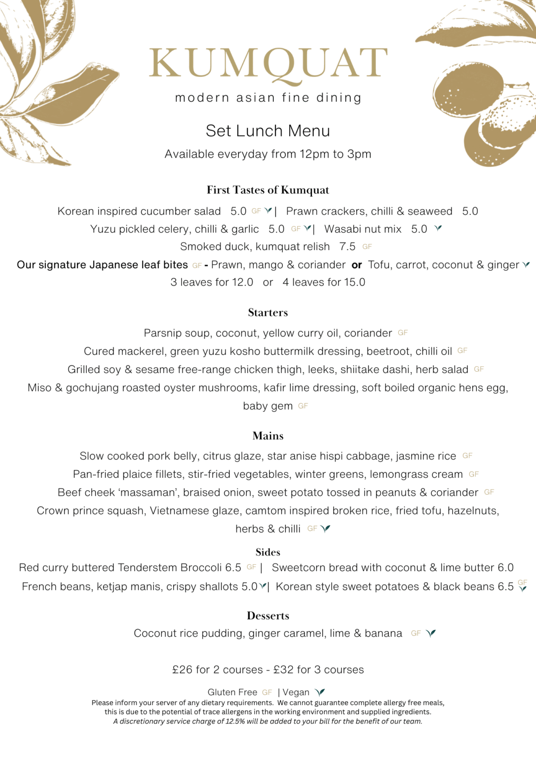 Kumquat showcases modern Asian dining with a focus on precision, balance, and creativity. Our à la carte menu is served for both lunch and dinner, with a seasonal set lunch available for those seeking a shorter dining experience.